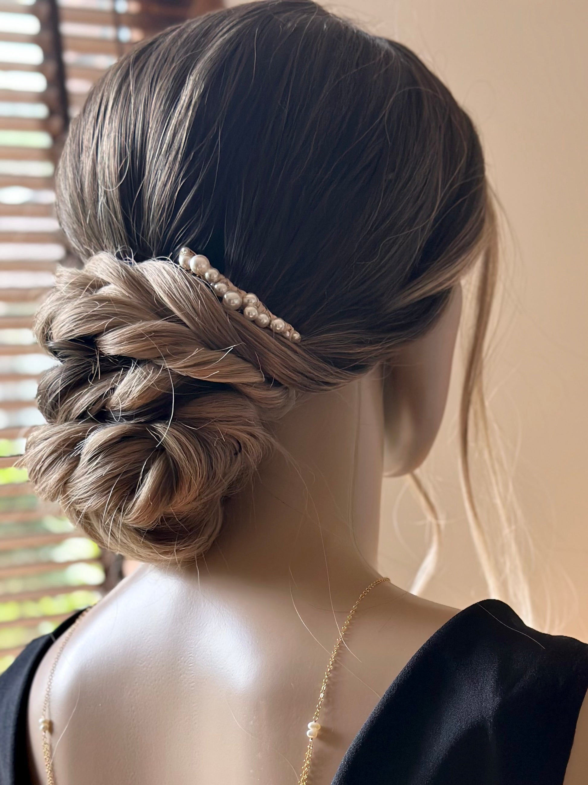 Peigne mariage glamour / élégant avec perles de cristal nacrées.
