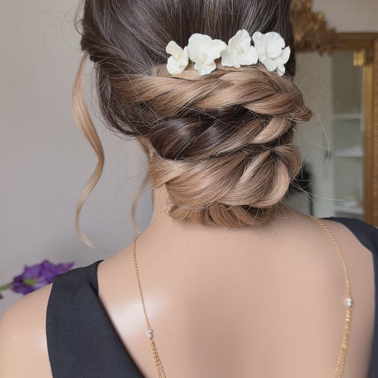 Ce peigne de mariée est entièrement façonné à la main pétale par pétale.